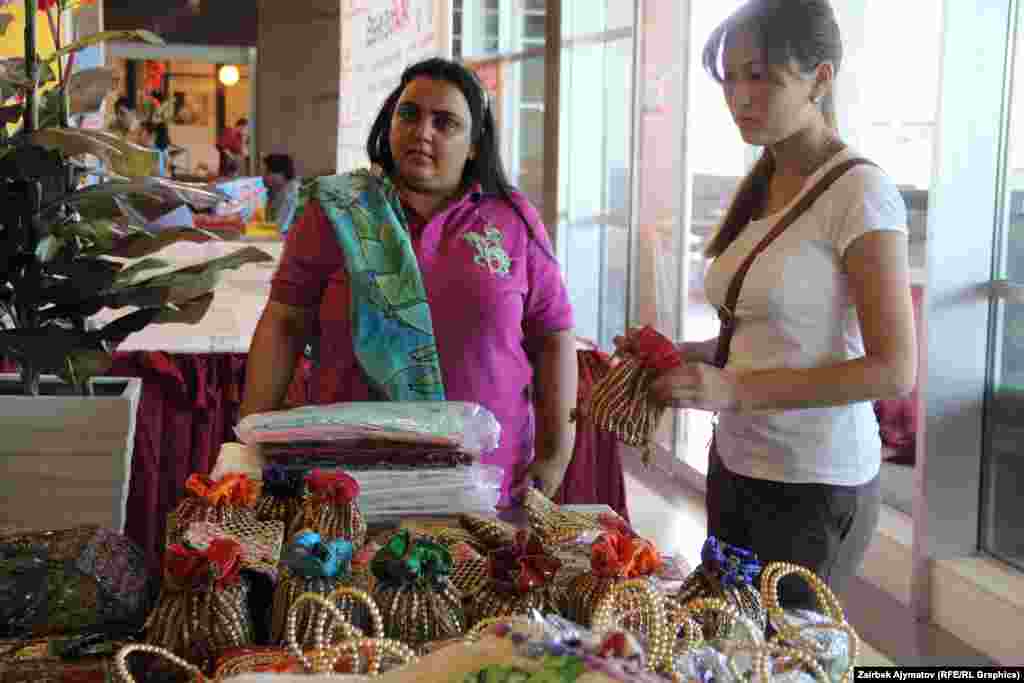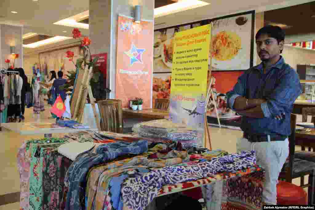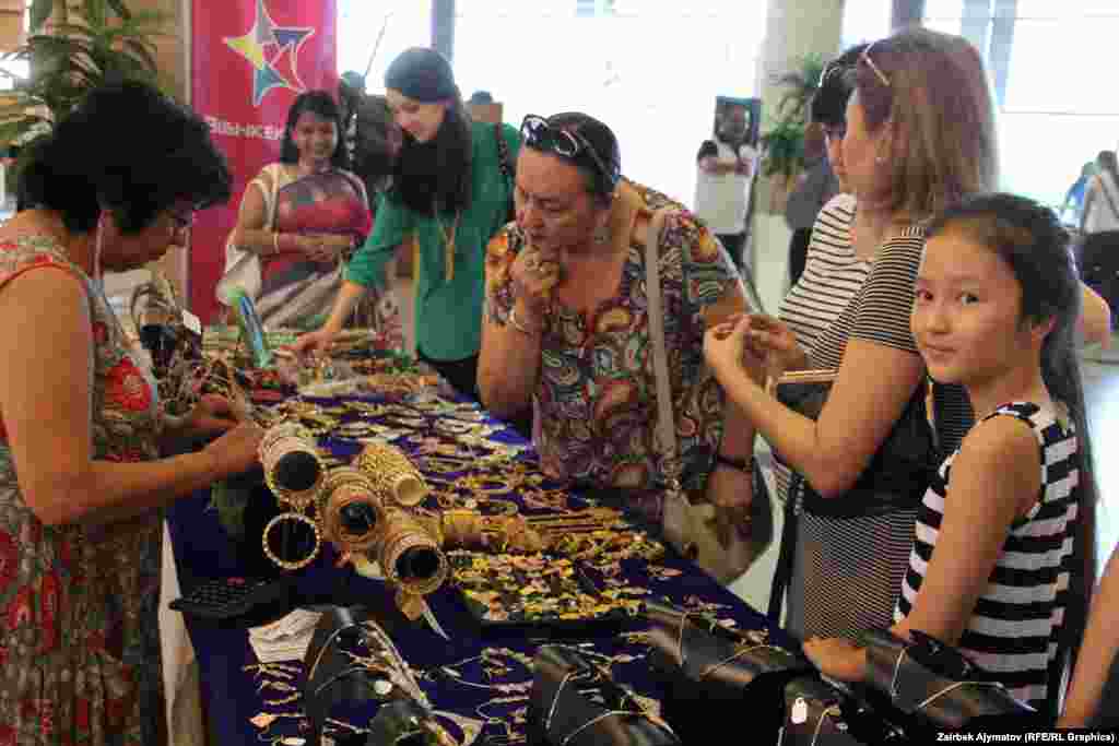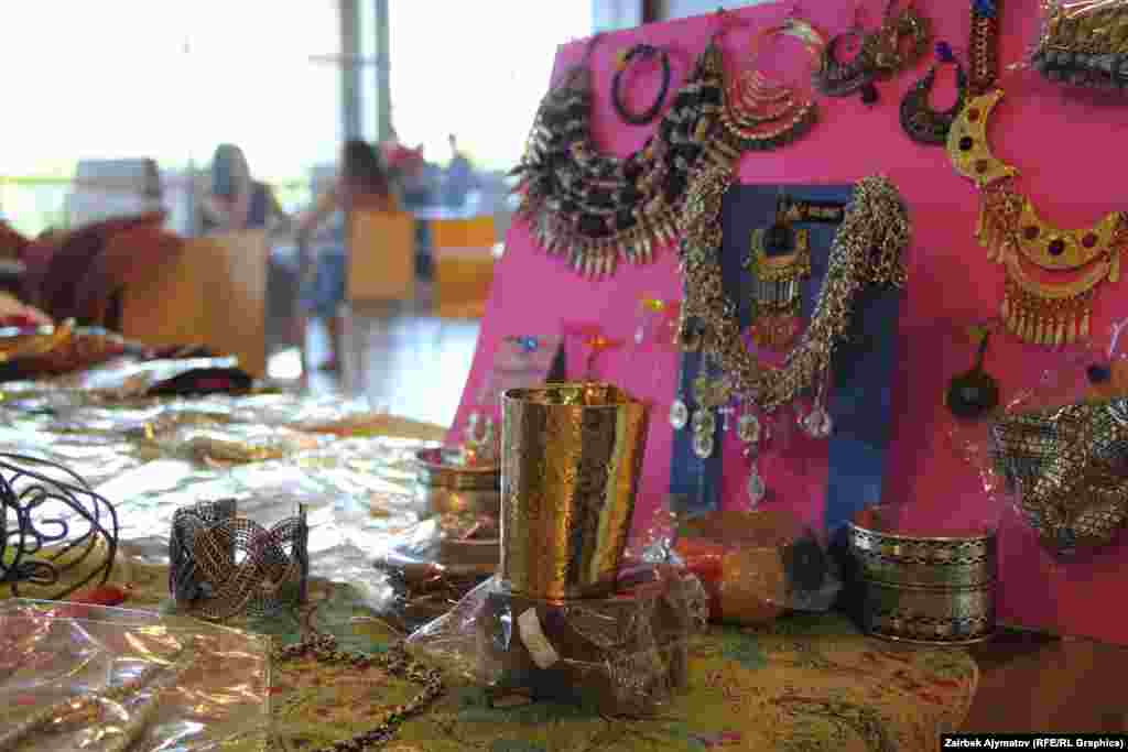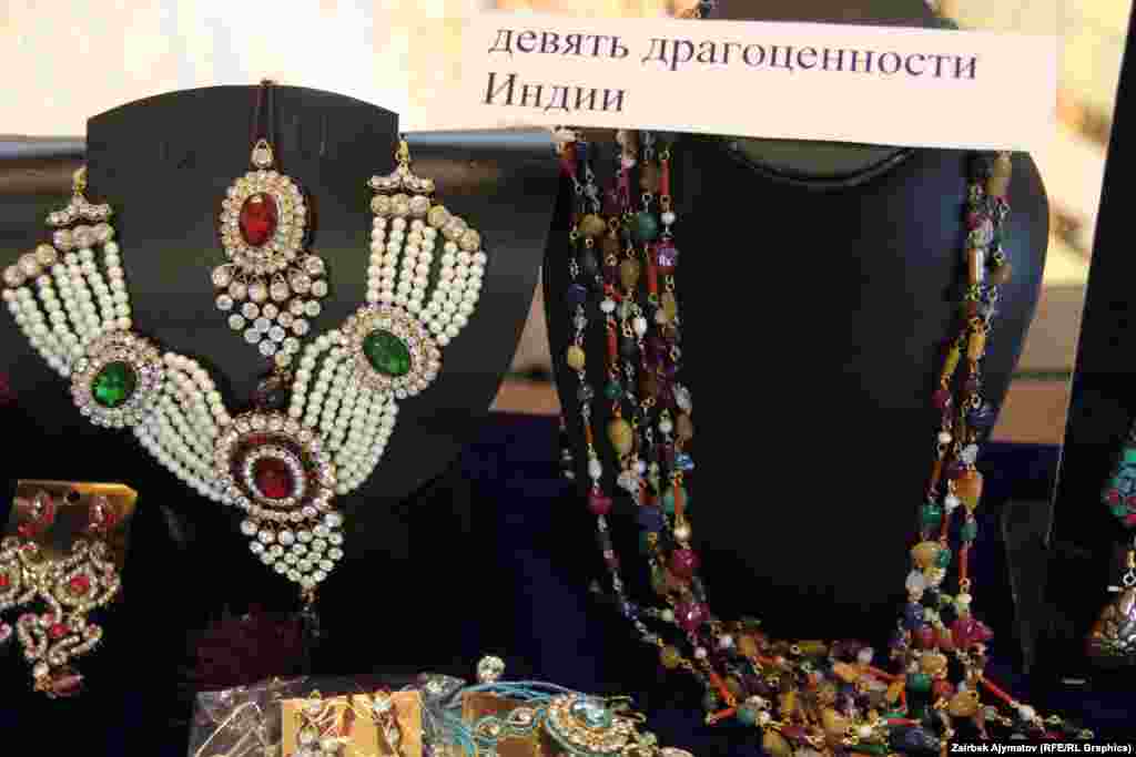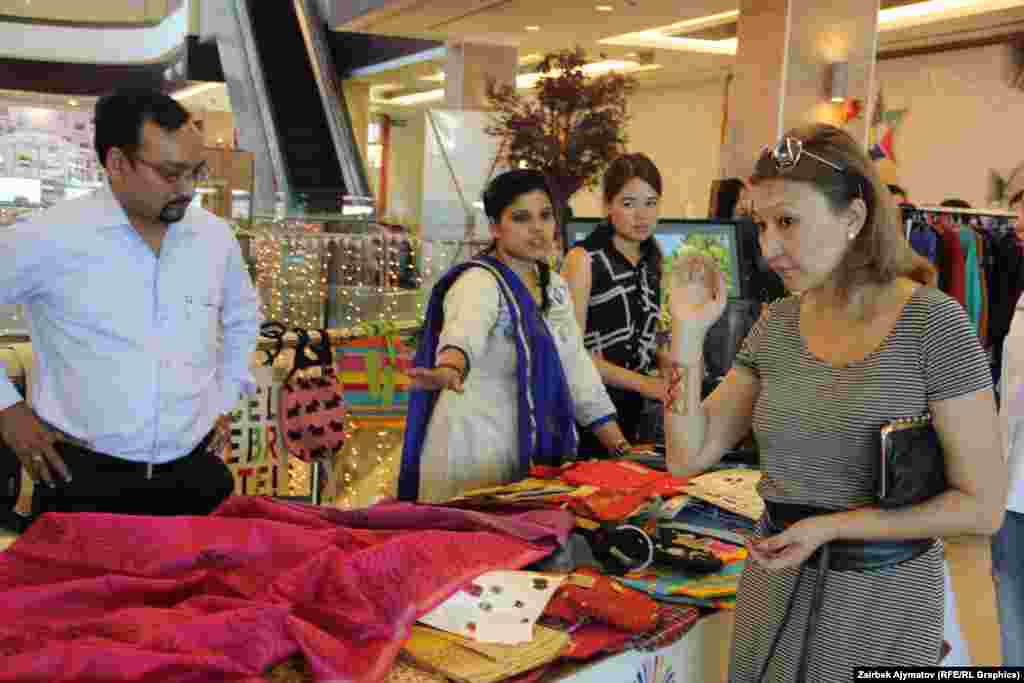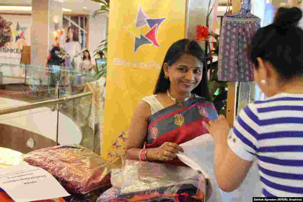 В Бишкеке прошла ярмарка «Дни культуры Индии». На ярмарке представлены традиционные атрибуты индийской культуры, а также косметика, духи, бижутерия, изделия из драгоценных и полудрагоценных камней и металлов, сари всевозможных цветов и разнообразного кроя, статуэтки, картины, вазы, настоящий индийский чай и другое.